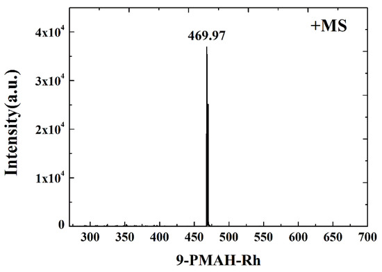 The ESI-MS analysis of 9-PMAH-Rh in methanol solution.