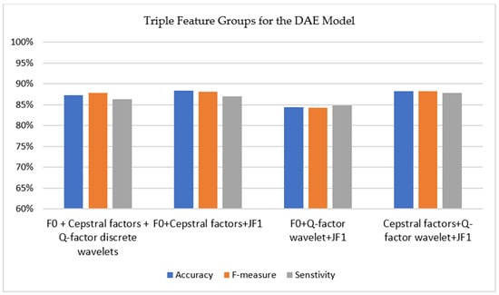 Performance results for triple feature groups for DAE.