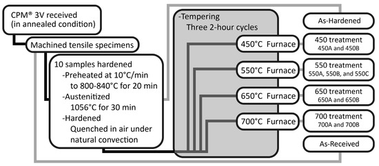 Flow chart showing the heat treatment steps. Tempering temperature was changed between sample sets.