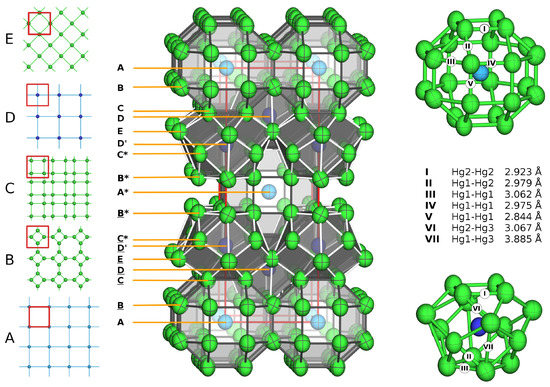 - Hoch, C.; Simon, A. Cs2Hg27, the mercury-richest amalgam with close relationship to the Bergman phases. Z. Anorg. Allg. Chem. 2008, 634, 853–856. [Google Scholar] [CrossRef]