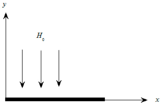 where stands for the displacement tensor, for magnetic permeability, and for particle velocity. The electrical conductivity of the semiconductor material during electronic deformation is given by , where denotes the electron charge, the electron number density, the electron collision time, and the electron mass. The Lorentz force, on the other hand, measures the pressure force of a strong magnetic field and is known as . Assume that an extremely strong magnetic field with intensity falls on the medium’s outer surface and that the induced electric field is ignored, or that . In the case of a 1D deformation, the strain tensor can be stated as , and the displacement quantity can be written as for the direction of the x-axis. In contrast, the components of the current density ( ) as determined by Ohm’s law for conduction (Equation (1)) can be expressed in the direction of -axis as follows: