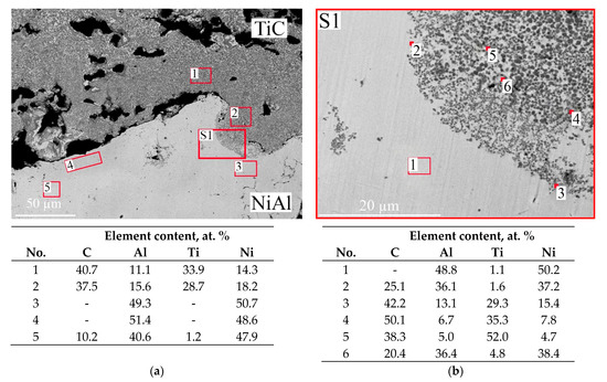 - An upper diffusion layer, which formed at the interface between NiAl and TiC (Figure 4b) and consisted of TiC + NiAl;