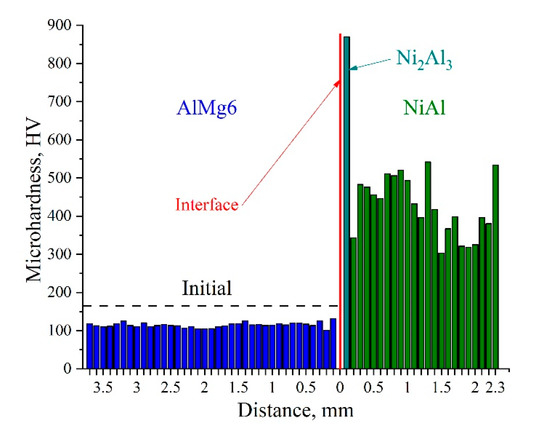 Figure 11 shows the microhardness distribution in the NiAl-AlMg6 joint interface.