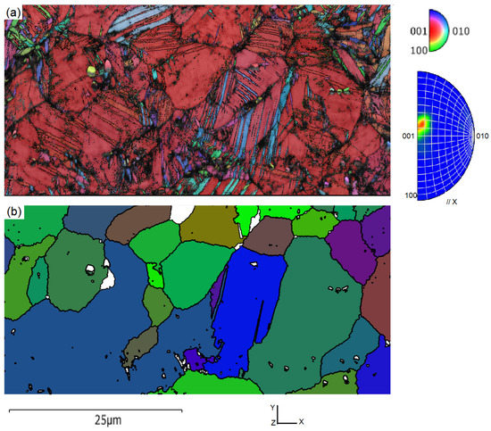 - Cayron, C. ARPGE: A computer program to automatically reconstruct the parent grains from electron backscatter diffraction data. J. Appl. Cryst. 2007, 40, 1183–1188. [Google Scholar] [CrossRef]