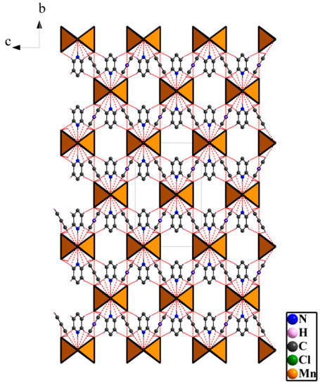 - Khadri, A.; Bouchene, R.; Bouacida, S.; Sid, A.; Alswaidan, I.A.; Ramasami, P. Synthesis, structural, thermal, Hirshfeld surface and DFT studies on a new hybrid compound: Bis[4-(dimethylamino)pyridinium] tetrachloridomanganate (II). J. Coord. Chem. 2020, 73, 609–621. [Google Scholar] [CrossRef]