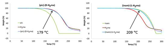 | (pic)-(D-H2ma) (1) (Figure 8a) | −42.7 | 39.7 |