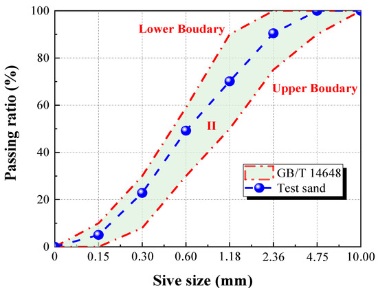 Figure 2 illustrates that the grading curve of the test sand is located between the upper boundary and lower boundary of class II sand [