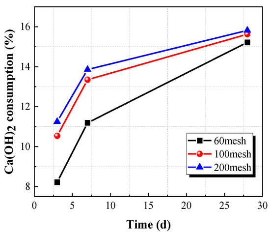 2 consumption method was adopted to evaluate the effects of mechanical activation and thermal activation on the pozzolanic activity of coal gangue in this study. Firstly, the CACG powder and calcium oxide were mixed evenly according to 4:1 by mass. Secondly, 20 g of the mixture and 10 g of water were stirred in a closed container in order to prevent a reaction between carbon dioxide in the air and the Ca(OH)