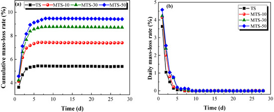 (a) Cumulative mass loss rate; (b) daily mass loss rate.