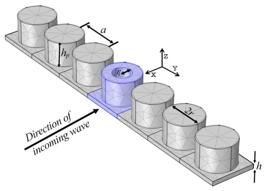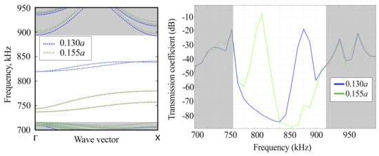 - Pourabolghasem, R.; Khelif, A.; Mohammadi, S.; Eftekhar, A.A.; Adibi, A. Physics of band-gap formation and its evolution in the pillar-based phononic crystal structures. J. Appl. Phys. 2014, 116, 013514. [Google Scholar] [CrossRef] [Green Version]