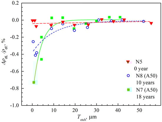 The etched layer density ρdL and the density-defect value ΔρdL/ρdL in the etched layers were calculated by the formulas: