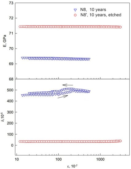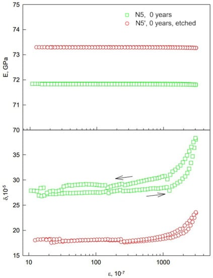 where Ei and δi are, respectively, the Young’s modulus and decrement in the amplitude-independent region).