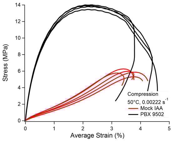 Stress–strain data for quasi-static compression of Mock IAA and PBX 9502.