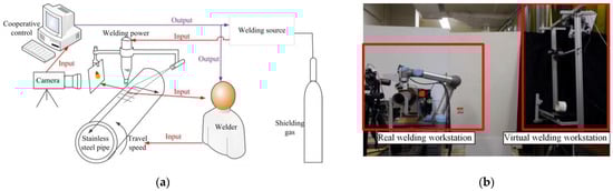 General view of the virtualized welding system [23], (a) schematic diagram, (b) real picture.
