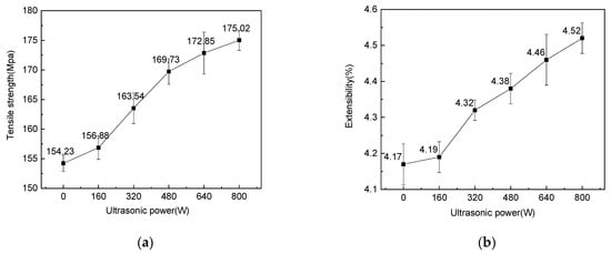 3.1. Influence of Ultrasonic Power on Mechanical Properties