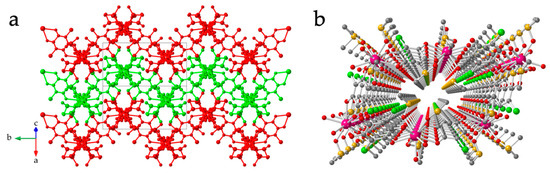 (a) View of three consecutive corrugated layers in compound 4. (b) Perspective view of one channel along the direction perpendicular to the layers.
