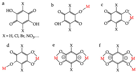 - Kitagawa, S.; Kawata, S. Coordination Compounds of 1,4-Dihydroxybenzoquinone and its Homologues. Structures and Properties. Coord. Chem. Rev. 2002, 224, 11–34. [Google Scholar] [CrossRef]