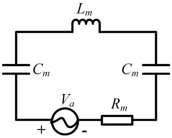 Furthermore, the equivalent circuit of the loop-antenna and parallel electrode has been shown in Figure 8. In Figure 8, Cm stands for the capacitance of the parallel electrodes, Lm and Rm are the inductor and resistance of the loop-antenna, and Va is the induced voltage. Based on the above simulation mode established using the COMSOL MULITI-PHYSICS, Lm and Cm of the loop-antenna and segmented electrode are calculated as 9.2834 nH and 0.12159 pF, respectively. Then, the limiting frequency bandwidth of the device can be estimated to be 1/2π√LmCm = 6.7 GHz.