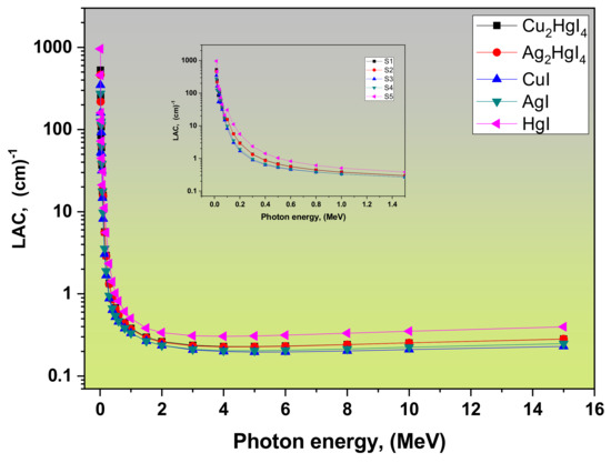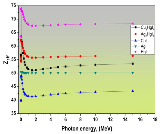 Zahran, H.Y.; Yousef, E.S.; Alqahtani, M.S.; Reben, M.; Algarni, H.; Umar, A.; Albargi, H.B.; Yahia, I.S.; Sabry, N. Analysis of the Radiation Attenuation Parameters of Cu2HgI4, Ag2HgI4, and (Cu/Ag/Hg I) Semiconductor Compounds. Crystals 2022, 12, 276. https://doi.org/10.3390/cryst12020276