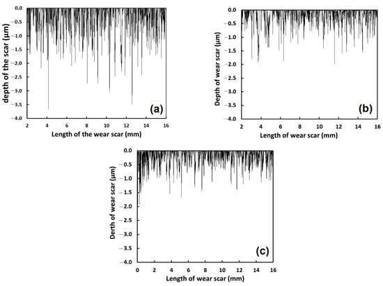 The depth of the wear scars was estimated with the aid of a profilometer Hommel Werke C-8000 with ±0.066 µm accuracy (Técnicas de Medida y Metalografía, S.A., Madrid, Spain).