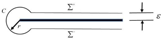 We assume that the fields associated with T are continuous in the neighborhood of the contour C. Following Bilby and Shelbie [26], calculating the contributions from the integrals on contours and as , Equation (34) becomes
