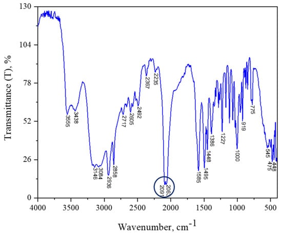 FTIR spectrum of (C6H11NH3)4[Ni(NCS)6]·2H2O.