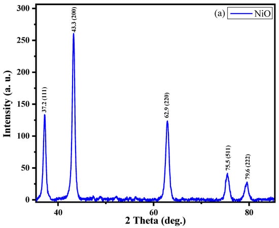 To calculate the microstrain of the nanocrystalline NiO and NiS, the uniform deformation model UDM of the Williamson–Hall method, presuming crystals isotropicity, was used, as given in Equation (6) []. This method implies that the properties are independent of the crystallographic direction of measurement.