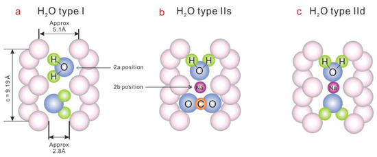 Channel configurations of type I H2O (a), type IIs H2O (b), and type IId H2O (c). Modified after [2,16,22].