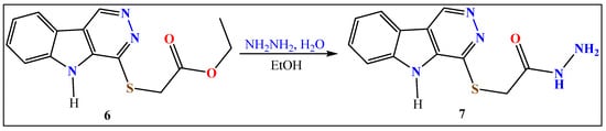 Ester 6 (1.0 mmol) and 2.0 mmol of hydrazine hydrate in 10 mL of ethanol were refluxed for 2 h and left to cool. Crystals formed and were collected by filtration, dried, and purified through recrystallization from ethanol.