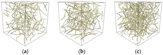Fiber distribution model. (a) 1.5 kg/m3, (b) 3 kg/m3, and (c) 4.5 kg/m3.