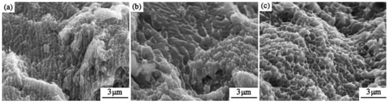 The tensile fractograph of a 3 vol.% nano-Si3N4/AlSi10Mg composite after annealing at (a) 180 °C, (b) 230 °C, and (c) 280 °C.