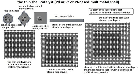 67]. Finally, utilizing a few nm-thick Pt- or Pd-based shells (or the Pt- or Pd-based atomic monolayers) and the shell properties a few atomic monolayers thick in the field of catalysis opens up new possibilities [
