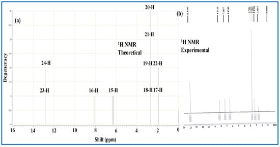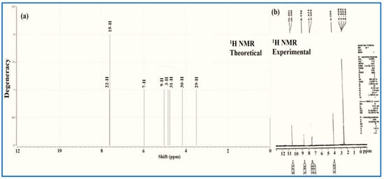 Calculated (a) and experimental (b) 1H-NMR spectra of the isolated compound 1.