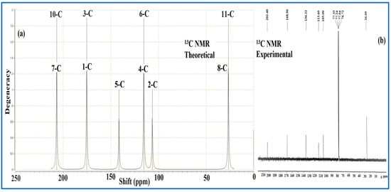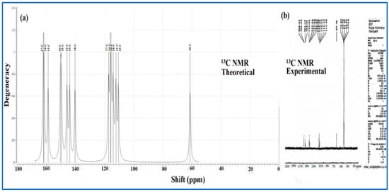 Calculated (a) and experimental (b) 13C-NMR spectra of the isolated compound 1.