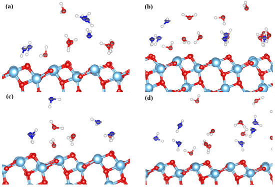 - Zhou, G.; Liu, C.; Huang, L. Molecular Dynamics Simulation of First-Adsorbed Water Layer at Titanium Dioxide Surfaces. J. Chem. Eng. Data 2018, 63, 2420–2429. [Google Scholar] [CrossRef]