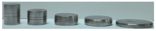 The forming step (stroke) was 30% of the specimen height from the previous phase, which resulted in four different degrees of deformation (Figure 1). The total number of specimens was 12, that is, 3 per forming step. After each forming step the axial strain εz was calculated using Equation (1).