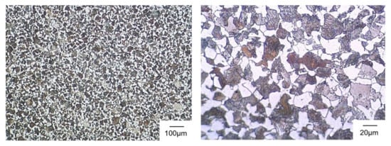 - Gonzaga, R.A. Influence of ferrite and pearlite content on mechanical properties of ductile cast irons. Mater. Sci. Eng. A 2013, 567, 2013. [Google Scholar] [CrossRef]