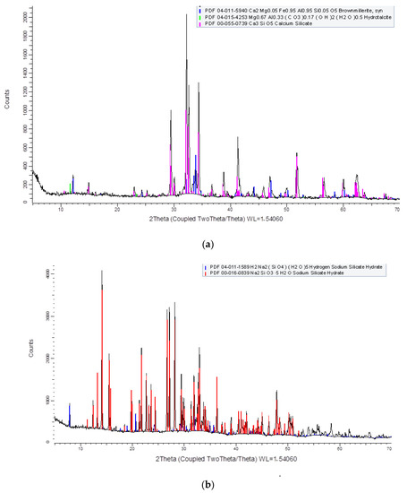From the EDS analysis, the main chemical elements of the healing products are Si, O, Ca and Na. It is observed that there is no Ca in the original healing agent “sodium silicate”, but there is a transfer of this compound to the cracked area. Since soluble silicates react almost instantaneously with multivalent metal cations to form the corresponding insoluble metal silicate [18], the chemical element Ca in healing products reveals that calcium cations from the cementing matrixes with the sodium silicate solution, and thus, CSH is formed in the cracks. However, there are not enough calcium cations to replace all of the sodium cations in solution. According to the previous discussion, the main resolution mechanism promoted by sodium silicate solution is the reaction of calcium cations with dissolved sodium silicate and the crystallization of available sodium silicate.