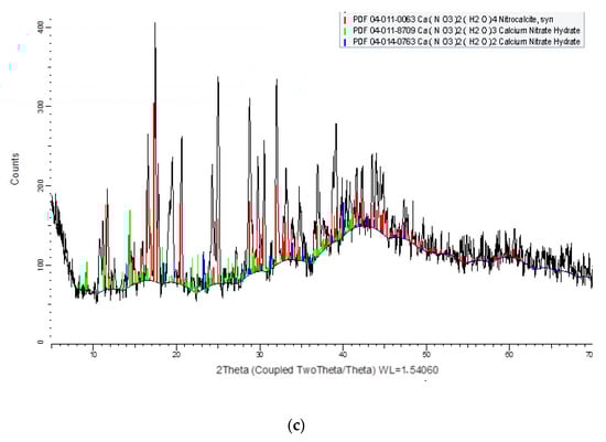 Cement, MSS and NC X-ray diffractogram. (a) Cement, (b) sodium silicate (MSS) and (c) calcium nitrate (NC).
