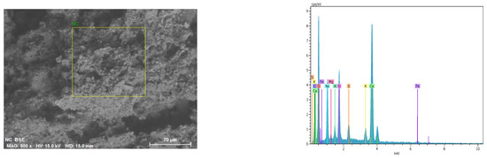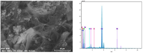 Figure 6 shows a micrograph of a cement sample with hydrated sodium silicate and on the right its respective EDS analysis at the age of 28 days.