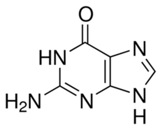 Guanine is one of the main nitrogenous bases found in the nucleotides of the nucleic acids (DNA and RNA) present in the cells of living organisms and viruses. Besides being involved in the storage and the expression of genetic information, it participates in many other cellular biochemical processes and structures [1,2,3]. Given that this purine nucleobase can be present in the fluids of human beings, their levels have been proposed as direct and indirect biomarkers for a variety of diseases and pathologies, such as Alzheimer’s disease [4], epilepsy [5] and human immunodeficiency virus (HIV) infection [6,7]. Hence, sensitive and selective methods for determining both this and other purine nucleobases are being investigated in several research areas [8,9].