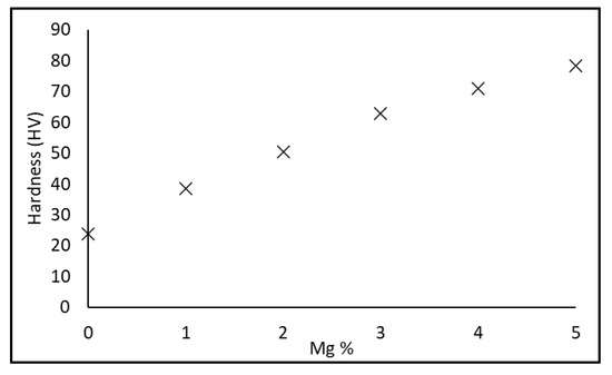 Hardness test results for Al (1050) alloy with different Mg percentiles.