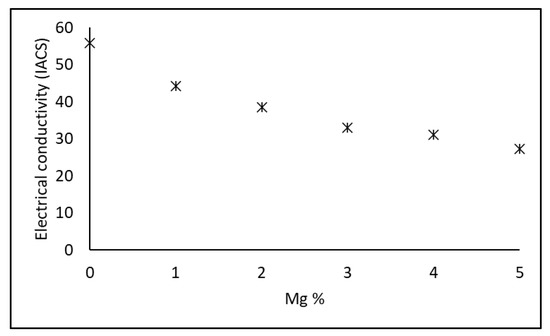 Electrical conductivity test results for Al (1050) alloy with different Mg percentiles.