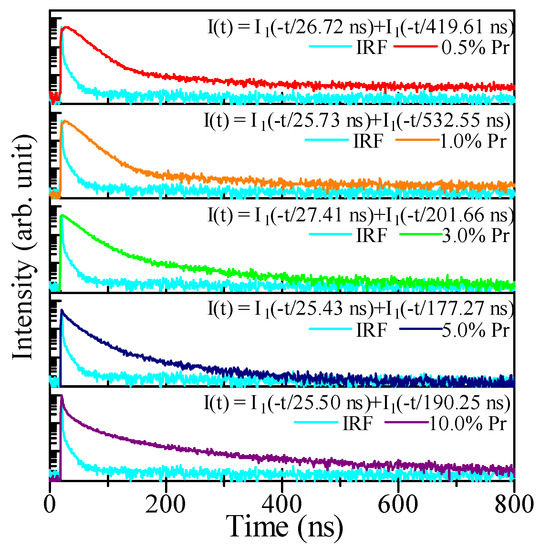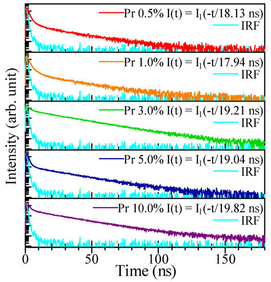 - Fidelus, J.D.; Yatsunenko, S.; Godlewski, M.; Paszkowicz, W.; Werner-Malento, E.; Łojkowski, W. Relation between structural properties of Pr3+-doped yttria-stabilized zirconia nanopowders and their luminescence efficiency. Scr. Mater. 2009, 61, 415–418. [Google Scholar] [CrossRef]