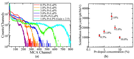 - Yanagida, T.; Watanabe, K.; Okada, G.; Kawaguchi, N. Optical, scintillation and radiation tolerance properties of Pr-doped pyrosilicate crystals. Jpn. J. Appl. Phys. 2018, 57, 106401. [Google Scholar] [CrossRef]