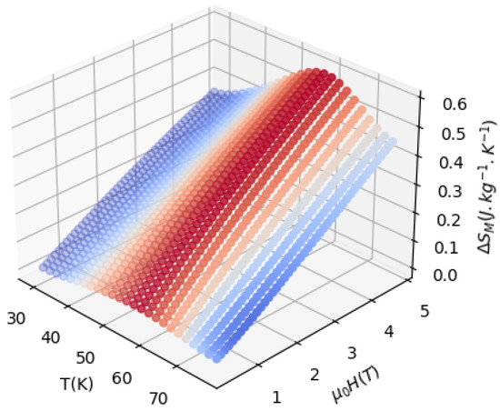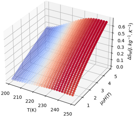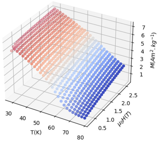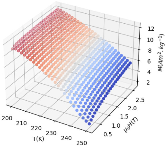 Here, M is the magnetization, T is the temperature, and H is the applied magnetic field. However, if discrete field changes measure the isothermal curves, the following expression can be used: [21]: