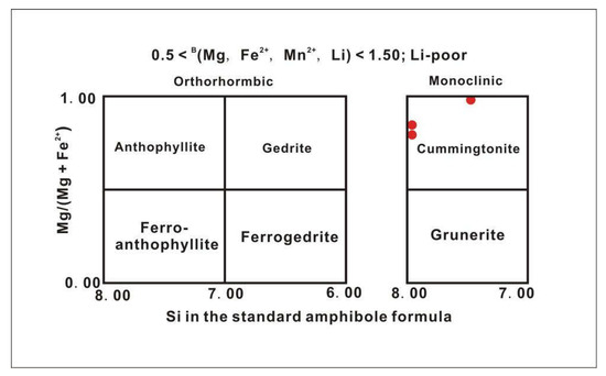 - Liu, X.F.; Wang, L.; Li, H.; Liu, J.; Zhao, F.F.; Lu, Q.X.; Hu, L. Systematic mineralogical classifications and nomencaltures of amphibole and pyroxene group minerals. Acta Mineral. Sin. 2015, 35, 19–28. [Google Scholar]