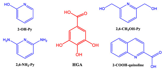 Synthesis. All synthetic procedures were carried out in air. Gallic acid (GA), 2-hydroxypyridine (2-OH-Py), 2,6-diaminopyridine (2,6-NH2-Py), 2,6-dimethylhydroxypyridine (2,6-CH2OH-Py), quinoline-2-carboxylic acid (2-COOH-quinoline), and solvents were purchased from commercial sources and used without any further purification. Carbon, nitrogen, and hydrogen contents were measured with a Carlo Erba microanalyzer, model 1106 (Carlo Erba Instruments, Egelsbach, Germany).