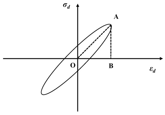 The dynamic characteristics of soil are mainly reflected in the dynamic elastic modulus Ed and damping ratio λ [21]. During the test, a hysteresis loop will be obtained for each load cycle, and the typical hysteresis loop is shown in Figure 9.