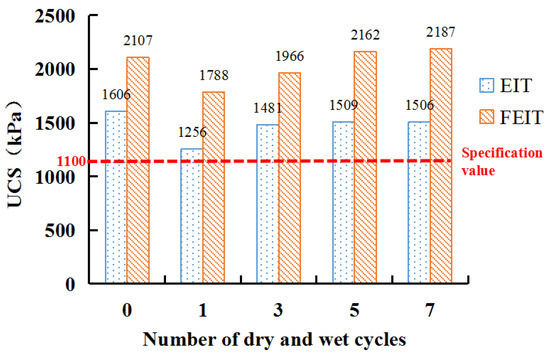 Graph of UCS of EIT and FEIT changing with number of dry–wet cycles.